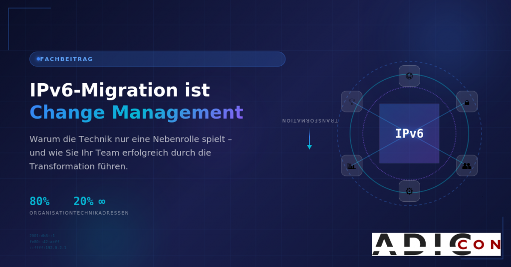 Als Projektleiter für IPv6-Transformationsvorhaben begleite ich diese Prozesse seit Jahren in Unternehmen mit hochkritischen Umgebungen, begrenzten Ressourcen und laufendem 24/7-Betrieb. In diesem Artikel zeige ich, welche organisatorischen, menschlichen und betrieblichen Herausforderungen gemeistert werden müssen und warum die reine Technik dabei nur eine Nebenrolle spielt.