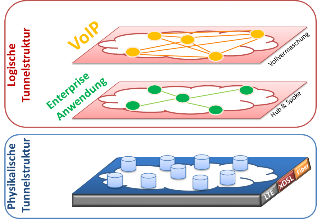 Die unterliegende physikalische Tunnelstruktur wird durch Vorgaben des virtuellen Overlays automatisiert eingerichtet.